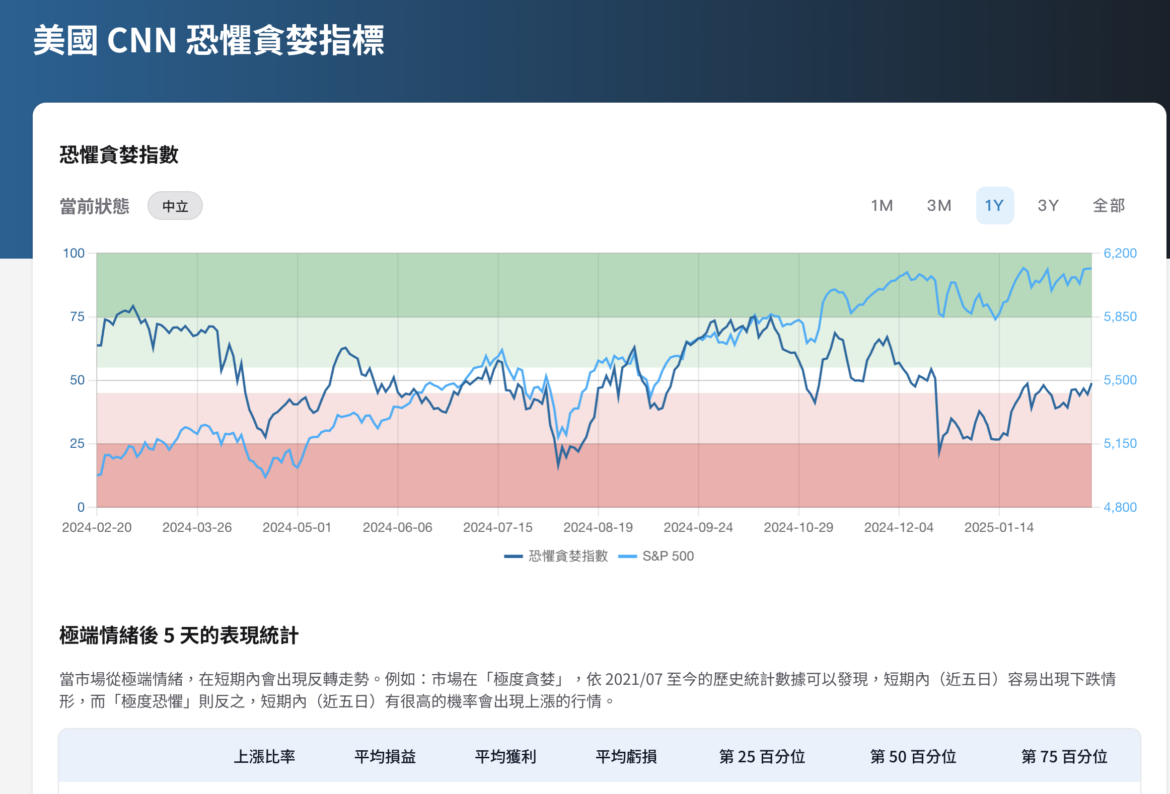 由上文可以得知,往往四巫日的當週和隔週股市的波動較為劇烈,連帶著市場的情緒起伏也會較大,那我們應該如何把握住這段時期來交易呢?這時可以參考 Growin 個股探勘的恐懼貪婪指數,根據我們的回測數據,只要能夠把握住極端情緒的反轉訊號,往往帶來的平均報酬都是很不錯的。